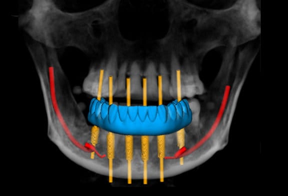 For our dental implant patients, Computer Guided Surgery is a new innovation that improves patient care, plain and simple. Computer Guided Surgery allows for exact planning before the patient ever starts the procedure. This technology helps us to do full arch reconstruction with precise implant placement and immediate temporization with the purpose of providing the patient with highest level of dental care possible. These cases consist of 4-6 implants per jaw. Once the placement is determined, the Surgical Guide and immediate prosthetics are fabricated. This technique allows us to perfectly replicated the procedure in the mouth, eliminating any source of error.